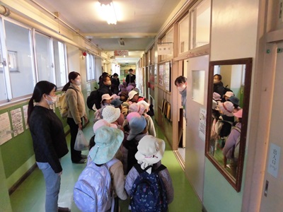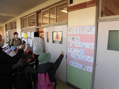 1年生が作った歓迎メッセージカードを嬉しそうに見て回りました。