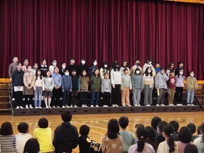 先生も参加して、6年生と一緒に歌いました。感動を届けました。