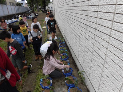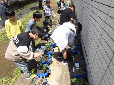 植え終わったら、日当たりのいい場所に植木鉢を置きました。