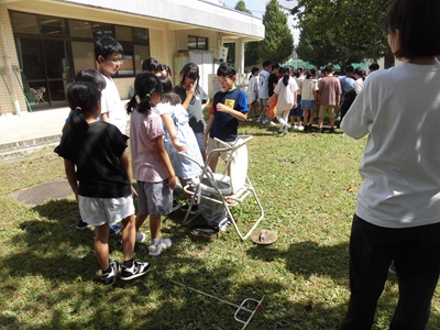 学校に設置されているマンホールトイレを4年生が見学しました。