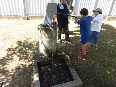 ポンプは子ども2人の力で動かすことができました。
