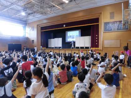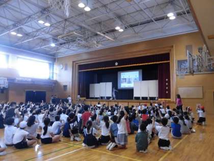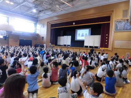 ゲームの後、今日から祖師谷小に来た教育実習生の紹介がありました。