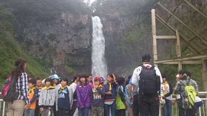 下から見上げる華厳の滝に圧倒されながら思い思いに見学しました。