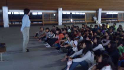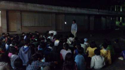 そのあと、宿前の広場に出て暗闇を体験しました。