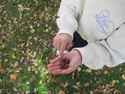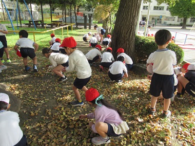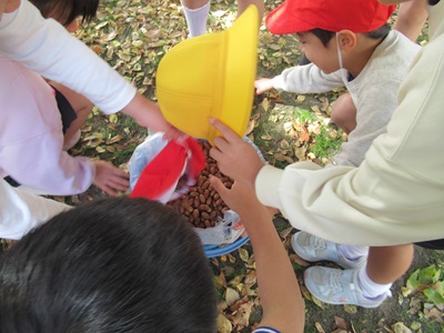 子ども達みんな、つやつや光るどんぐりをバケツいっぱい集めて満足そうな顔をしていました。