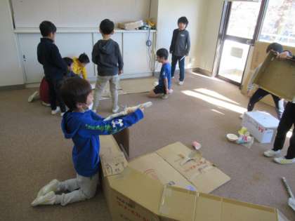 2年生は、生活科で作った「動くおもちゃ」でおもちゃランドをしました。
