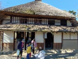 民家園では中に入ったり、お話を聞いたり、グループ見学です。