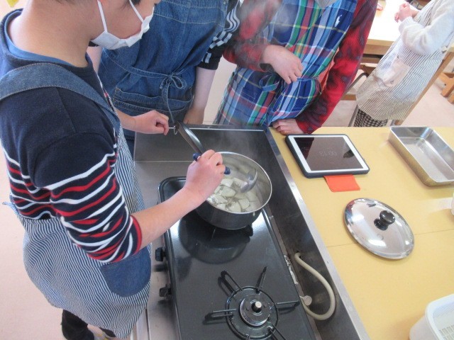 火にかけた鍋からいい香りがしてくると、「おいしそう」と香りを楽しんでいました。