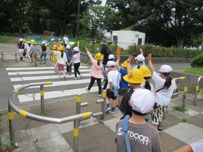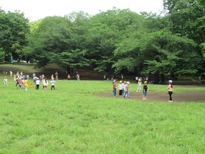 仲良く手をつないで歩き、祖師谷公園に到着しました。