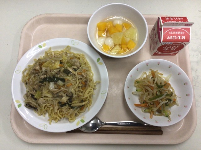 シャンハイめんは、シャンハイ風の味付けをしたあんかけ焼きそばです。シャンハイでは、しょうゆ・酢・酒で味付けをします。しっかりとした味付けですが、酢が入っているのでさっぱりしていて食べやすくなっています。蒸し暑い日が増えてきたので、しっかり食べて体力をつけてほしいなと思います。