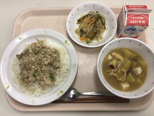 6月4日から10日は、「歯と口の健康週間」です。歯と口の健康のために、「よく噛むこと」はとても大切です。よく噛むと、食べ物の味がよくわかるようになったり、虫歯になりにくくなったり、脳のはたらきがよくなったりするためです。今日のかみかみサラダには、ごぼうと茎わかめを使いました。かみごたえのあるサラダでした。