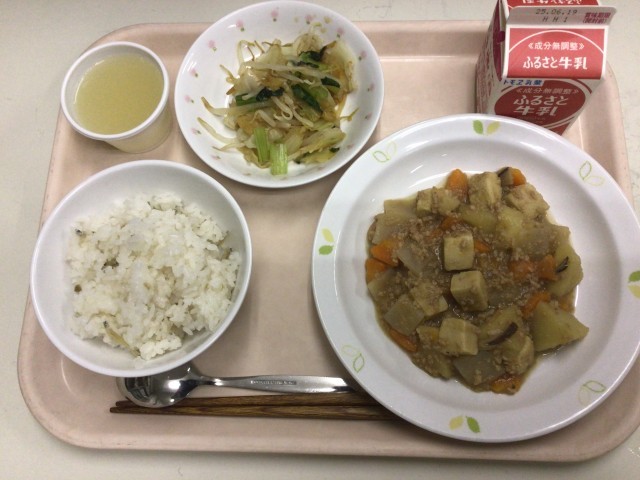 今日は1日早い入梅献立です。入梅は、暦の上で梅雨に入ることです。また、この時期は青梅の収穫の時期でもあります。そこで今日はカリカリ梅を使った梅ごはんを作りました。さっぱりとしていて食べやすかったです。