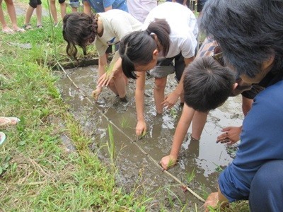 足首まで泥につかると最初は悲鳴があがりましたが、