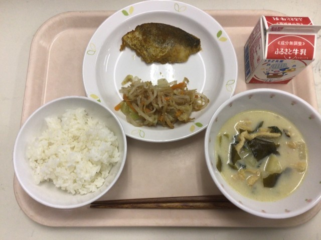 今日は読書旬間の特別献立です。「やきざかなののろい」という本には、焼き魚が苦手な男の子が登場します。ちゃんと食べてもらえない焼き魚は、男の子に怖い呪いをかけてしまいます・・・。また、「おさかなどろぼう」という本に出てくる猫のトラは、お腹が空くと、人が持っている食べ物を・・・。続きは本を読んでみてください。今日は2冊の本に合わせて焼き魚の献立にしました。