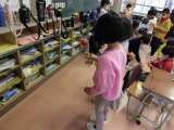 砧保育園とぽこころ保育園の園児が学校見学に来ました。 第一昇降口で、お正月の...
