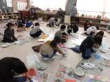 2年生の図工、お面作りです。 机を廊下に出して、教室を広くしてから作業スタート...