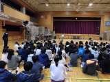 「箏・尺八・三弦 音楽鑑賞会」です。 4年生と6年生が和楽器の音色に耳を傾けま...