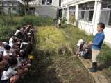 秋の深まりを肌で感じるようになりました。 5年生は理科園にある水田で稲刈りを実施...