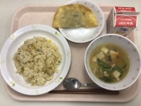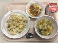 <献立>・チャーハン・ジャンボぎょうざ・はるさめスープ・牛乳 ジャンボぎょうざは...