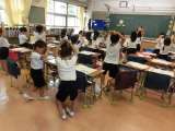 今日は、ぽぷら学級紹介集会です。 体育館で行いました。 ぽぷら学級の子どもたち...