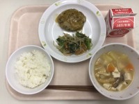 <献立>・ごはん(有機米)・さくさくつくね・野菜のごまあえ・呉汁・牛乳 今日のさ...