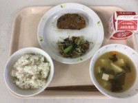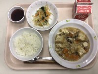 <献立>・ごはん・生揚げのそぼろあんかけ・和風サラダ・ぶどうゼリー・牛乳 今日は...