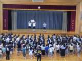 全校朝会です。 校長先生のお話は、 しなやかで折れにくい「竹」のように強い子ど...
