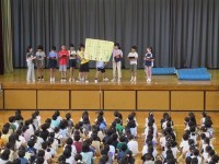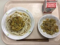 <献立>・冷やしかき揚げうどん・野菜のカレー炒め・牛乳 今日は一日早い「夏至献立...