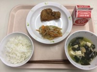 <献立>・ごはん・鶏肉のから揚げ・野菜のごまあえ・豆腐のすまし汁・牛乳 今日のす...
