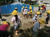 1組の生活科「夏を楽しもう」です。 山を作る子。 どろだんごを作る子。 カップ...