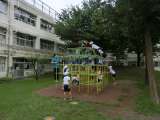 1年の体育です。 ジャングルジム、雲梯などの遊具を使い 体のバランス感覚を養いま...