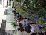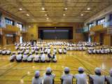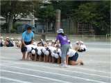 高学年の組体操の様子です。 舞台に立っている先生の方をしっかり向いて、真剣に話を...