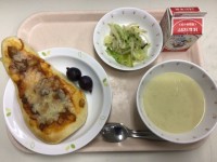 <献立>・ナンピザ・グリーンサラダ・じゃがいものポタージュ・巨峰・牛乳 今日のデ...