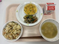 <献立>・くきわかめごはん・ツナ入り卵焼き・野菜ののりおかか和え・5−3オリジナ...