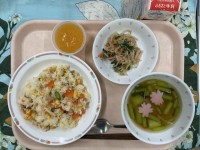 ごはん牛乳春巻き塩ナムルわかめと豆腐のスープ