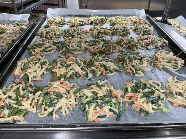 チヂミは、じゃがいもをすりおろして作ることが多いですが、今日は千切りにして作りました。