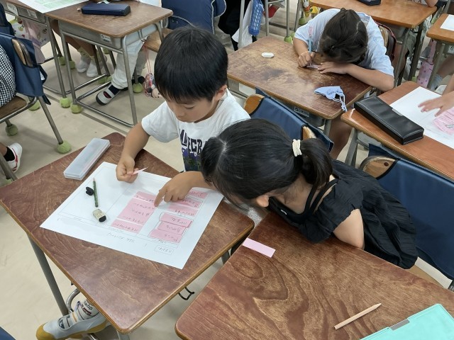 1、2年生合同の虫とりに多摩川へ行く前に、多摩川について知っていることや、やってみたいことをまとめました。やりたいことがたくさんあり、ワクワクしている様子でした。