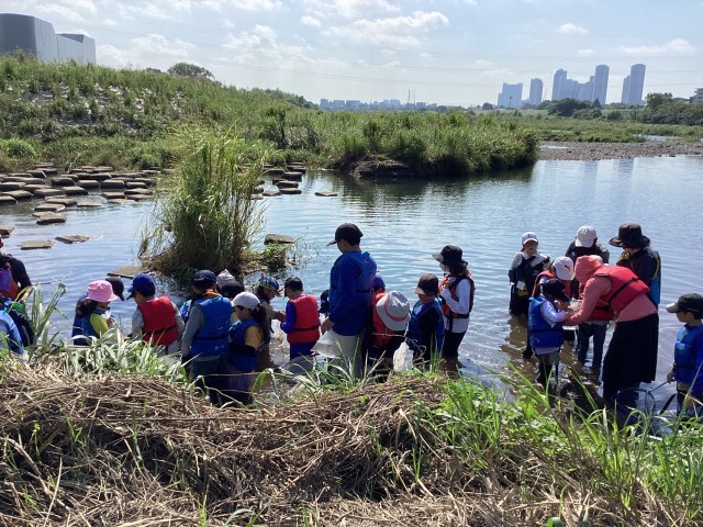NPO法人 砧・多摩川あそび村の方のご協力のもと、「虫」「植物」「鳥」「魚」の4つのグループに分かれて学習をしました。学校では見かけない様々な生き物を見つけ、子どもたちがうれしそうに報告してくれました。改めて多摩川は自然が豊かであることを感じていました。