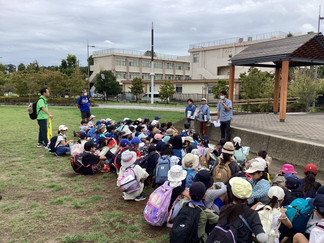 今日は二子玉川ビジターセンターの方のご協力のもと、二子玉川公園で多摩川の学習をしました。