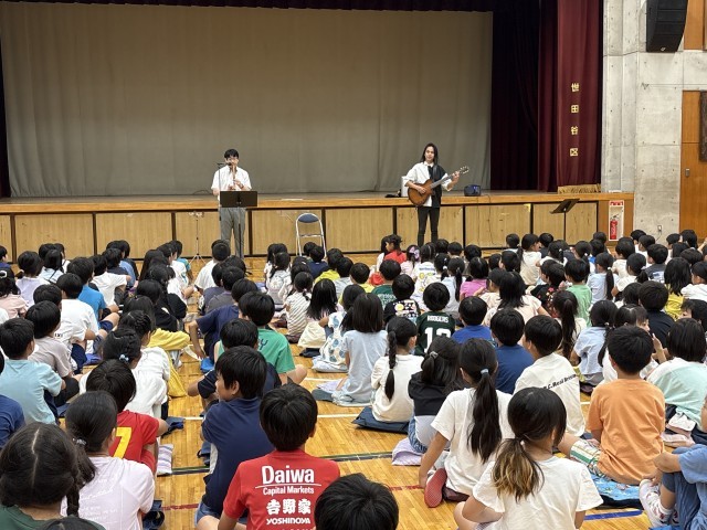 幸運にもここ数年、玉堤小に来てくださっているエバリーさん。今年も素敵なコンサートをしていただけました。