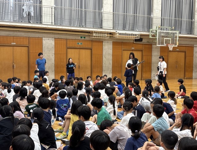 今年は尺八とギターのメンバーで、和風で味のある素敵な雰囲気の音楽が体育館中に響き渡りました。