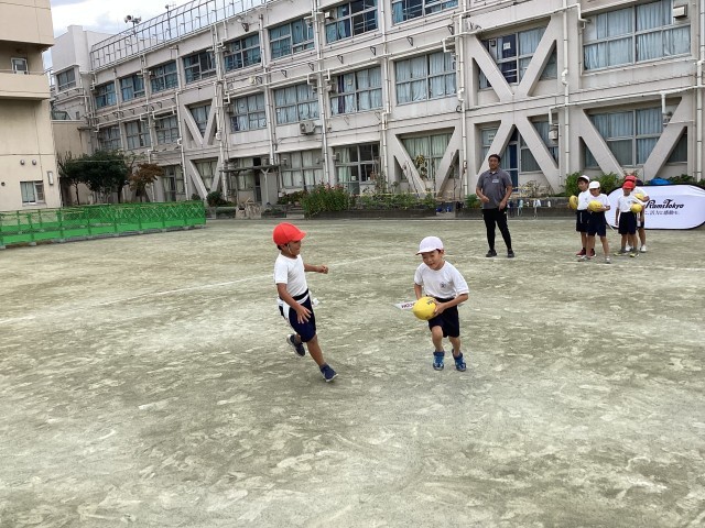 ブラックラムズ東京の方をお招きし、タグラグビーについて教えていただきました。