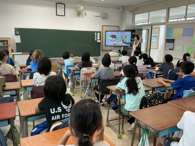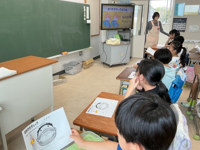 4年生を対象とした歯科指導を行いました。今回のテーマは「歯垢(しこう)と歯みがきの正しい方法」についてです。歯垢とは何か、どのように虫歯や歯周病につながるのかを学びました。子どもたちは「見えないけれど、口の中にたくさんあるんだ!」「歯みがきしないと大変!」と驚いた様子で、熱心に話を聞いていました。