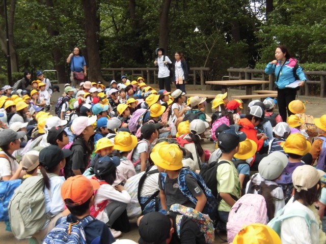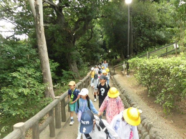 1,2年生で大田区の多摩川台公園へ生活科見学(遠足)へ行きました。1,2年生合同の班ごとに,2年生がリードしながら河川敷を歩き,公園まで行きました。