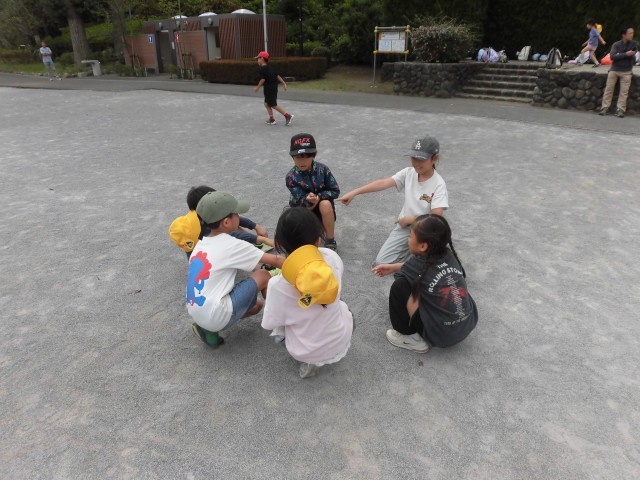 公園では,どんぐり拾いをしたり,班ごとに2年生が考えた遊びをしたりして,楽しみました。遊びの後は,お弁当を班ごとに食べました。