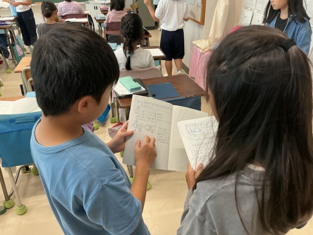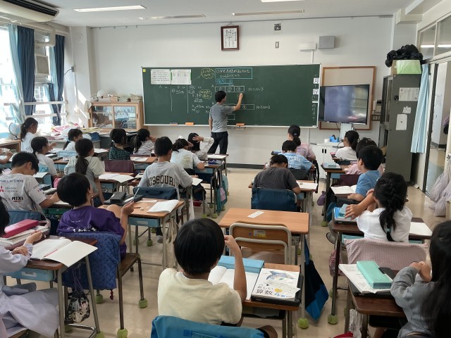 式を使ったり、図を使ったり、子どもたちは、集中して学習していました。