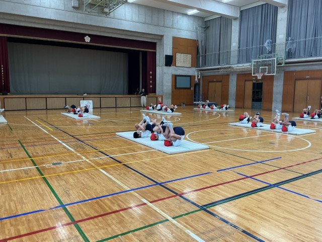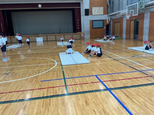 感覚作りや前転を行い、技をきれいに見せるためにはどうしたら良いかを考えて運動していました。