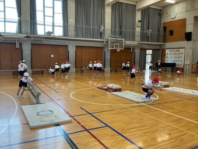 とびばこ遊びでは,「ピタッと名人になろう」をめあてに学習を進めています。