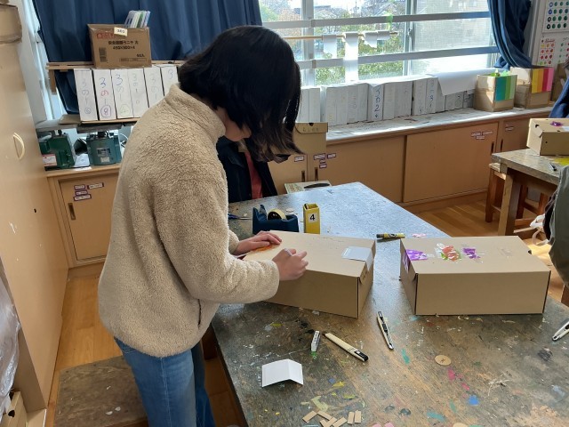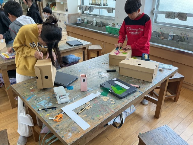 のぞくとどんな世界が広がっているのでしょう。子どもたちは、イメージを広げながら作成しています。