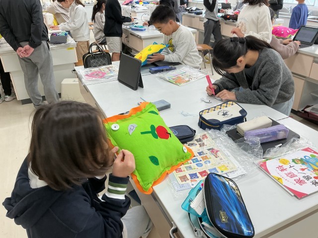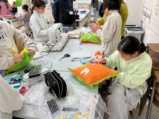 5年生の家庭科では、展覧会で展示するクッションを作成しています。